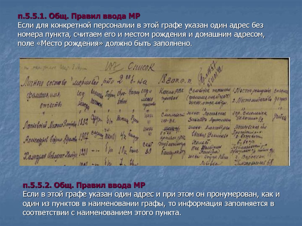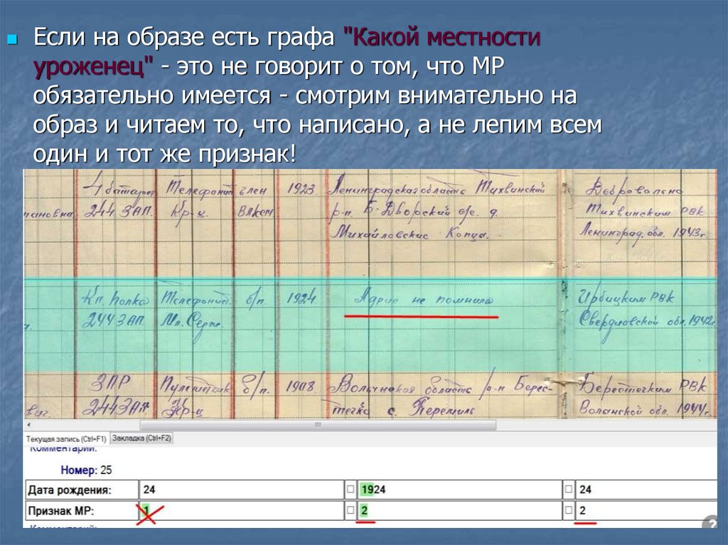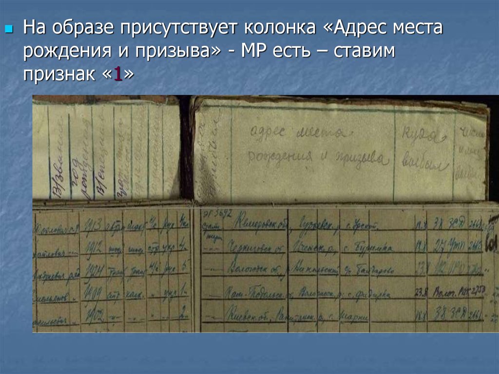 На образе присутствует колонка «Адрес местарождения и призыва» - МР есть – ставим