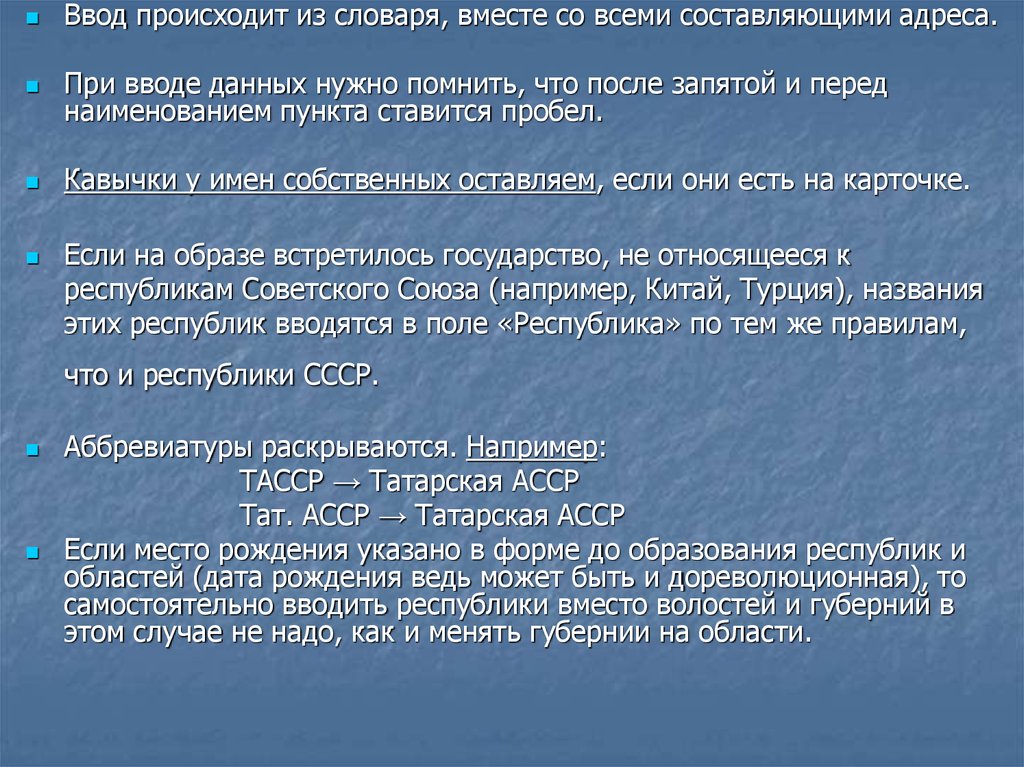 п.5.5.1. Общ. Правил ввода МРЕсли для конкретной персоналии в этой графе указан один адрес без