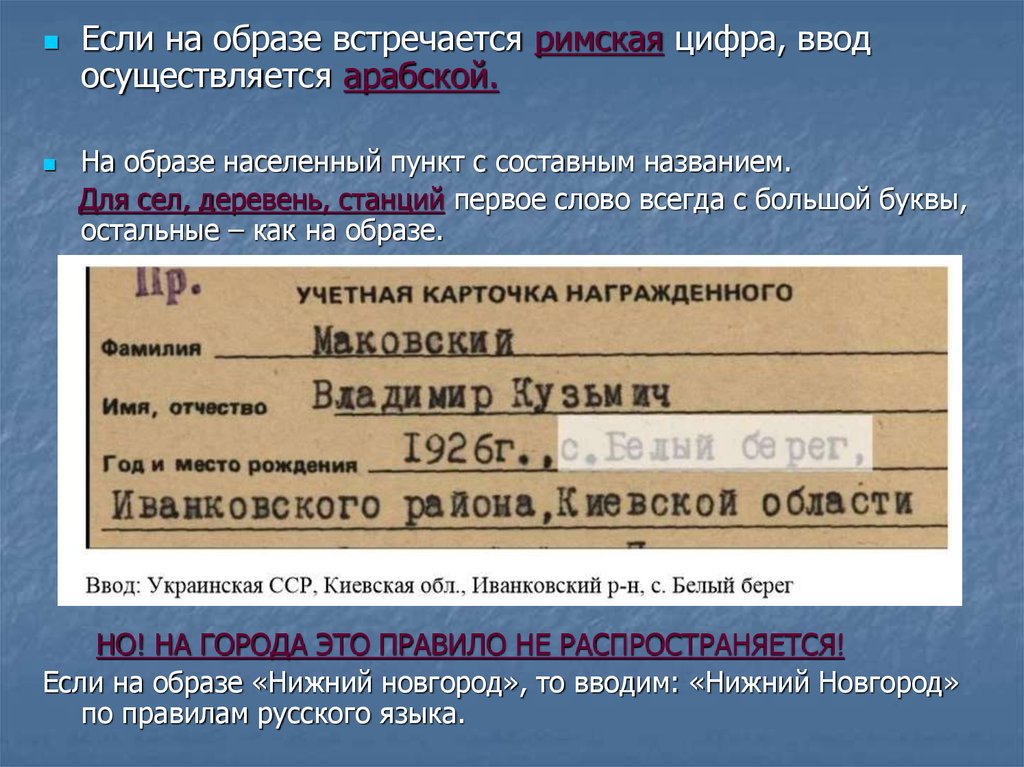 Если на образе встречается римская цифра, вводосуществляется арабской.
