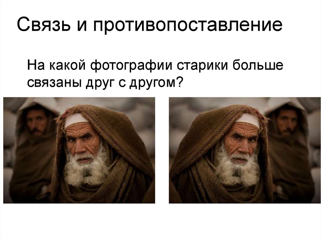 Связь и противопоставлениеНа какой фотографии старики больше