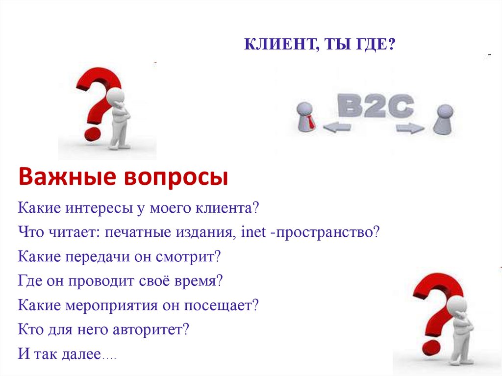 КЛИЕНТ, ТЫ ГДЕ?Важные вопросы