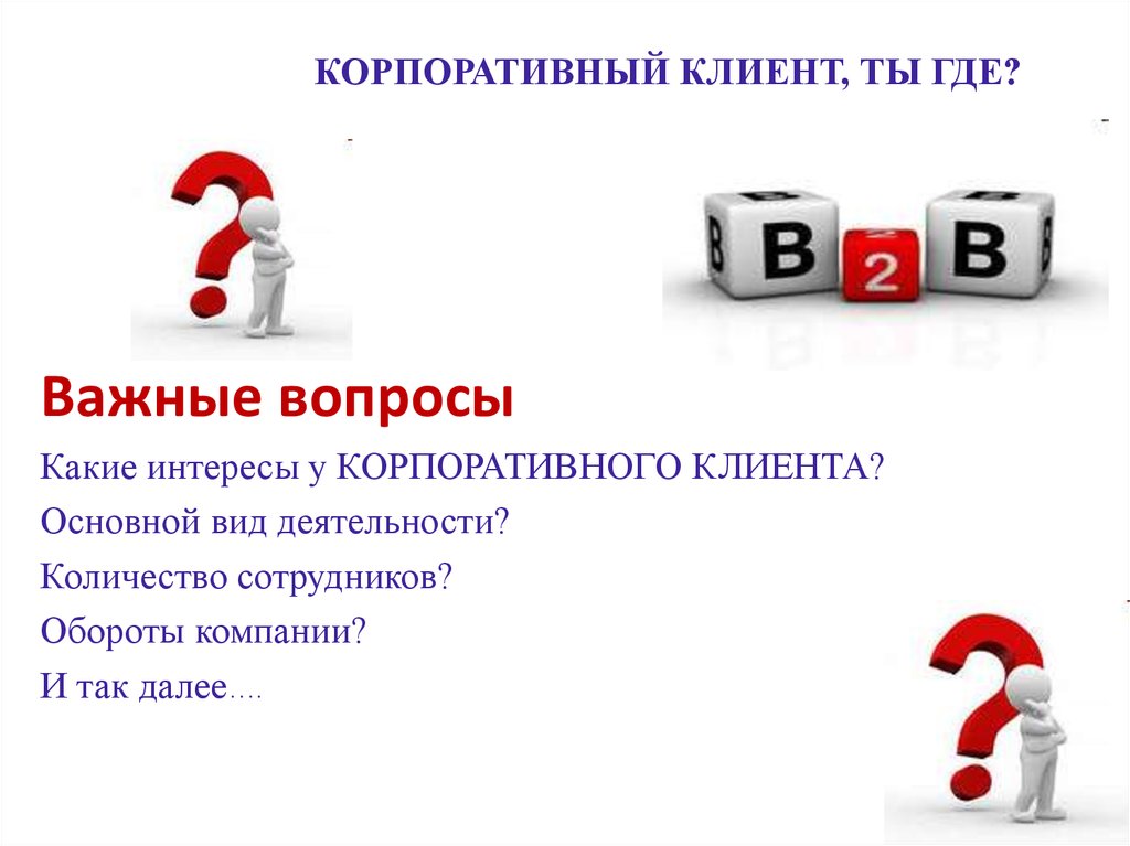 КОРПОРАТИВНЫЙ КЛИЕНТ, ТЫ ГДЕ?Важные вопросы