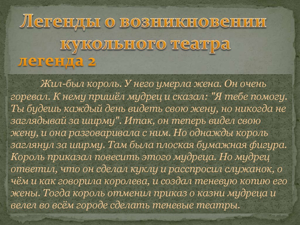 Жил-был король. У него умерла жена. Он оченьгоревал. К нему пришёл мудрец и сказал: "Я тебе помогу.