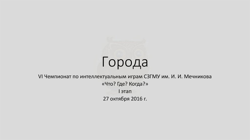 Города. VI Чемпионат по интеллектуальным играм СЗГМУ им. И. И. Мечникова «Что? Где? Когда?»