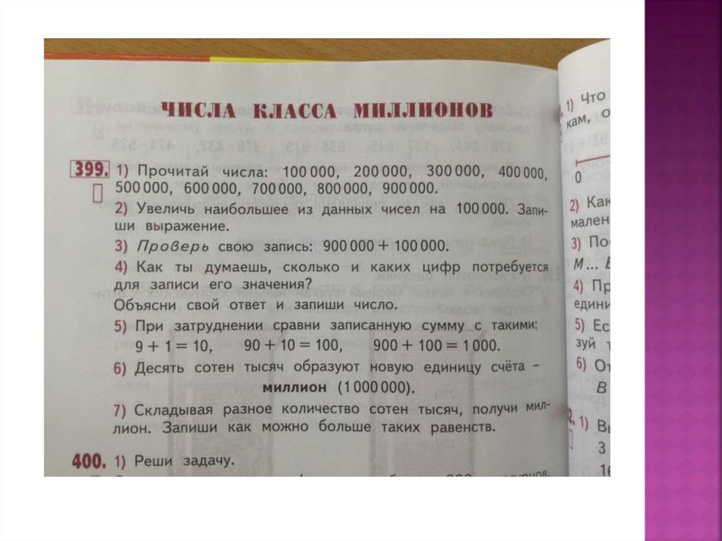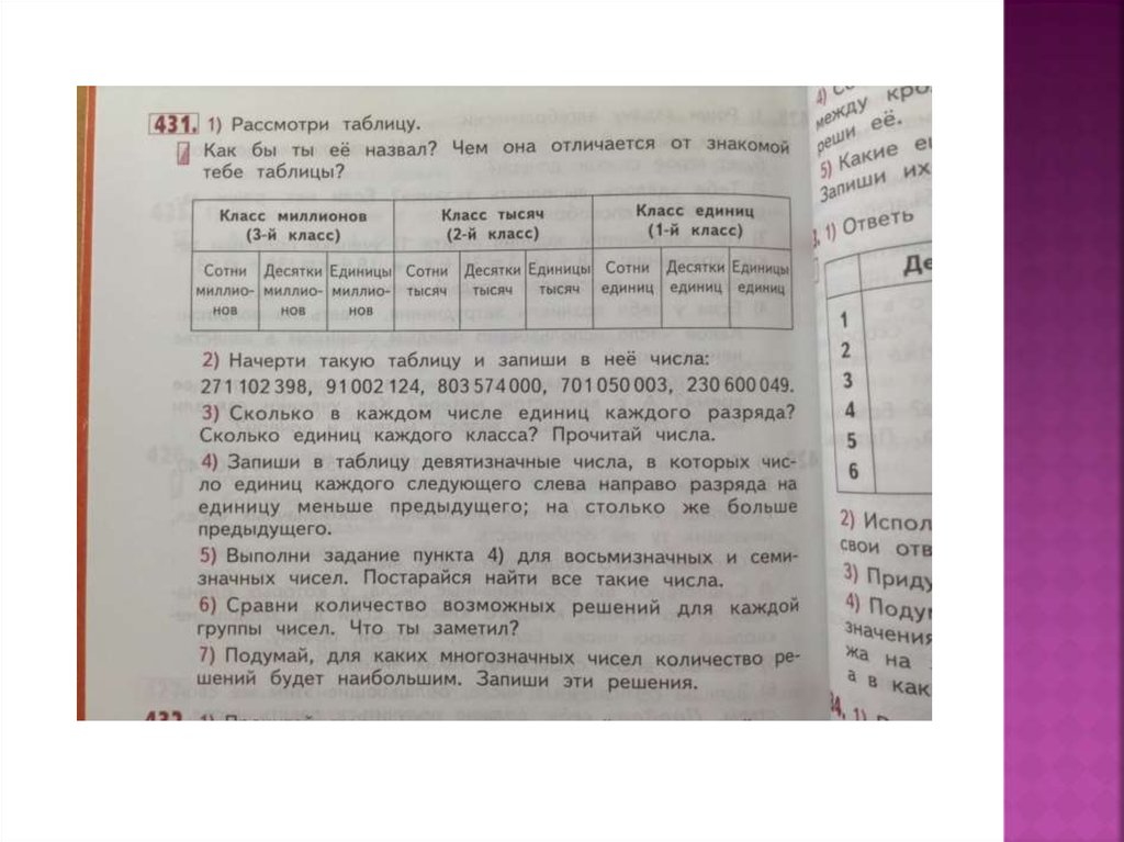 При изучении концентра чисел в пределахтысяч появляется новое понятие – класс. В