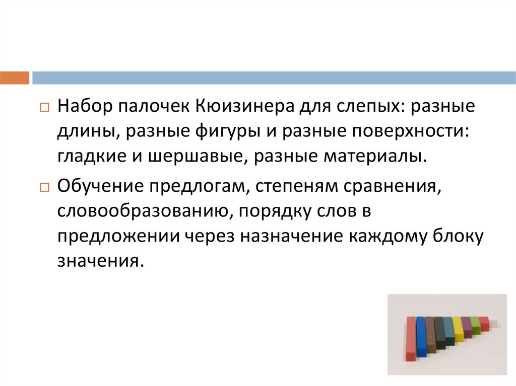 Набор палочек Кюизинера для слепых: разныедлины, разные фигуры и разные поверхности: