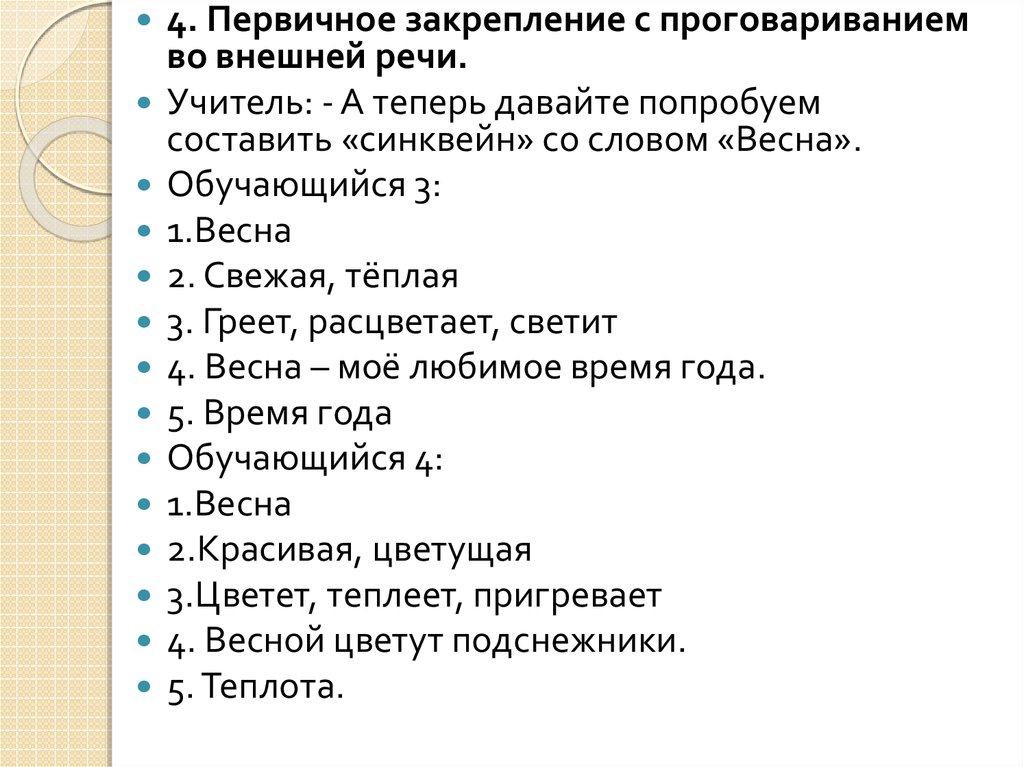 4. Первичное закрепление с проговариваниемво внешней речи.