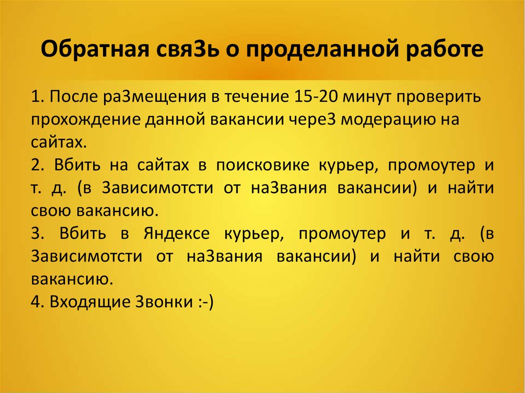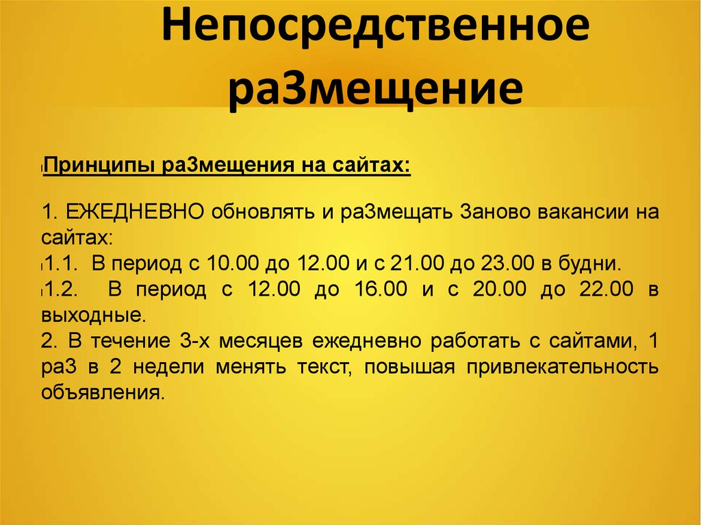 1. ЕЖЕДНЕВНО обновлять и ра3мещать 3аново вакансии на