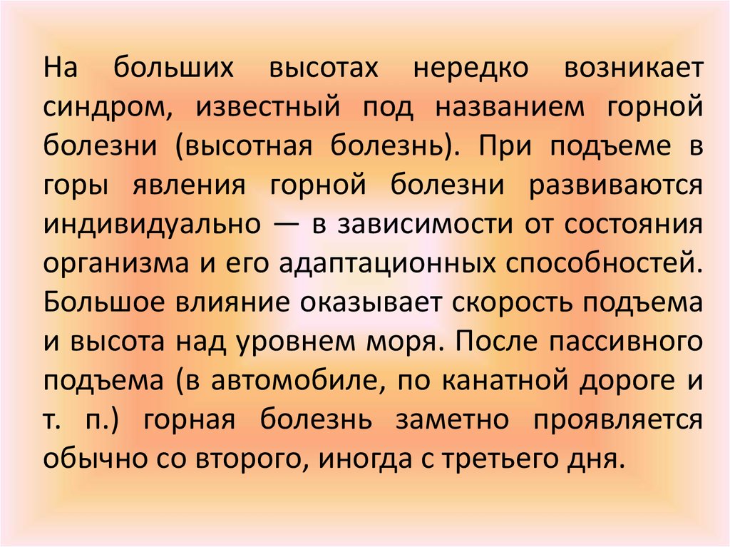 На больших высотах нередко возникаетсиндром, известный под названием горной