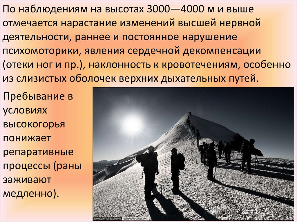 По наблюдениям на высотах 3000—4000 м и вышеотмечается нарастание изменений высшей нервной