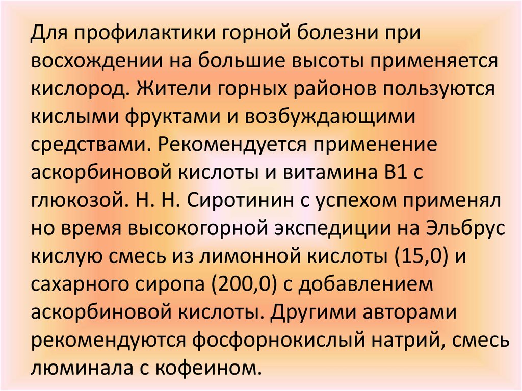 Для профилактики горной болезни привосхождении на большие высоты применяется