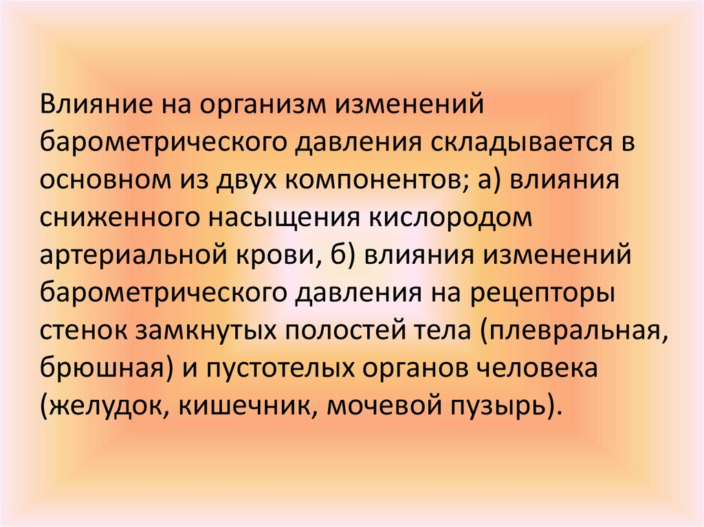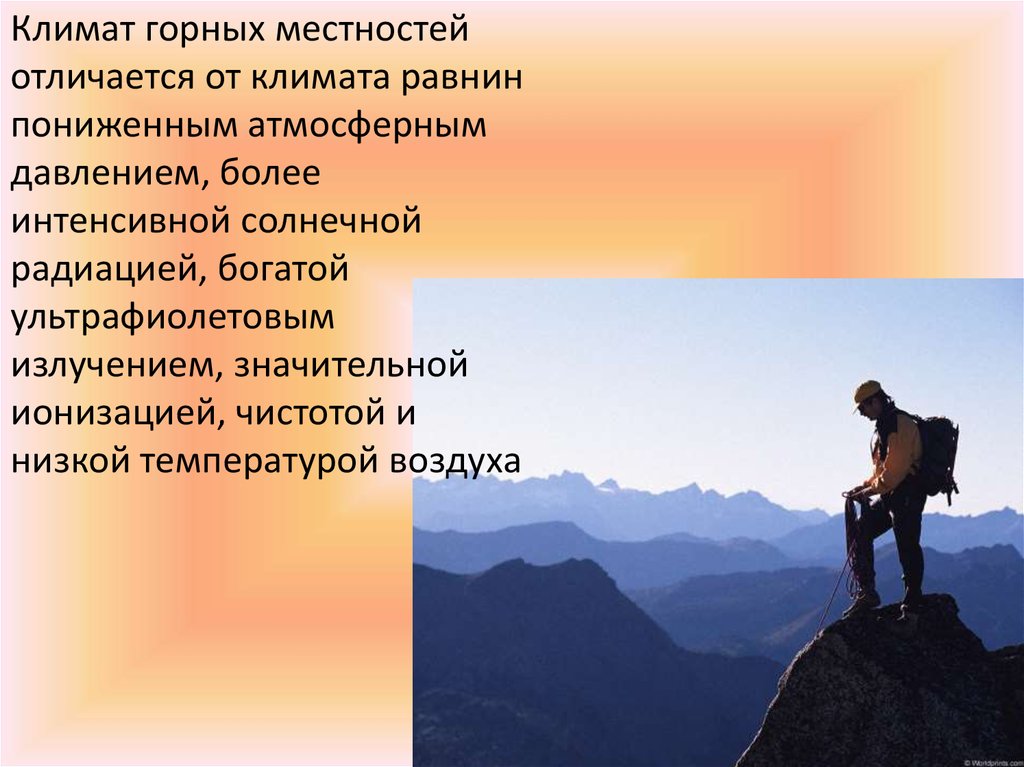 По мере продвижения в гору – снижаетсяатмосферное давление и уменьшается