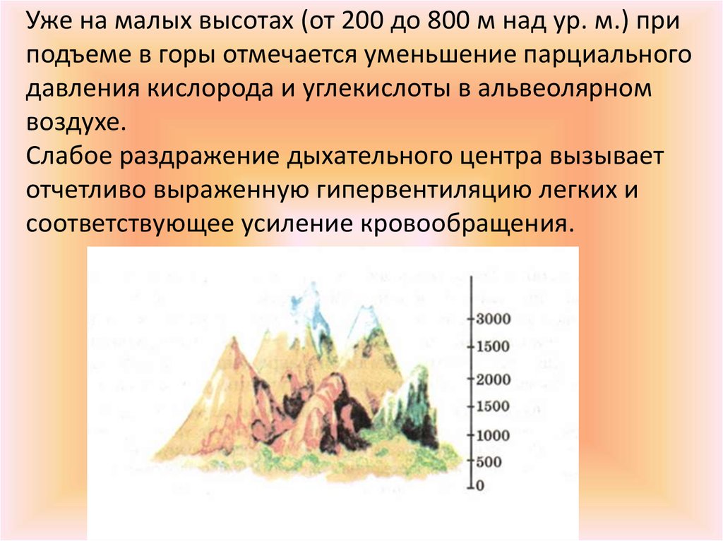 Уже на малых высотах (от 200 до 800 м над ур. м.) приподъеме в горы отмечается уменьшение парциального