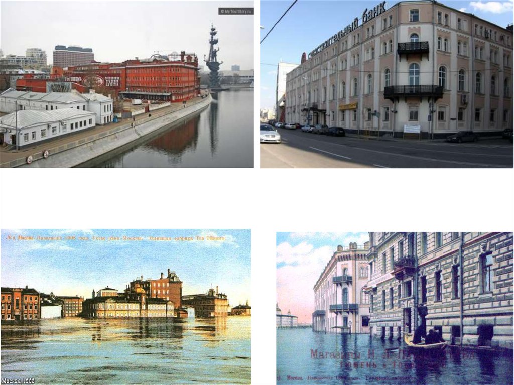 Одно из самых больших наводнений произошло в Москве 10 апреля 1908 года.Разливом рек Москвы, Яузы и Водоотводного канала была охвачена почти 1/5 всей