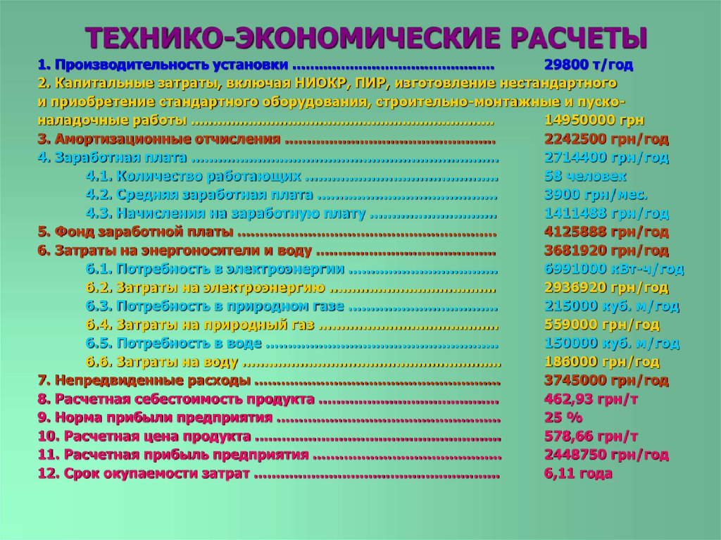 ТЕХНИКО-ЭКОНОМИЧЕСКИЕ РАСЧЕТЫ1. Производительность установки ..............................................