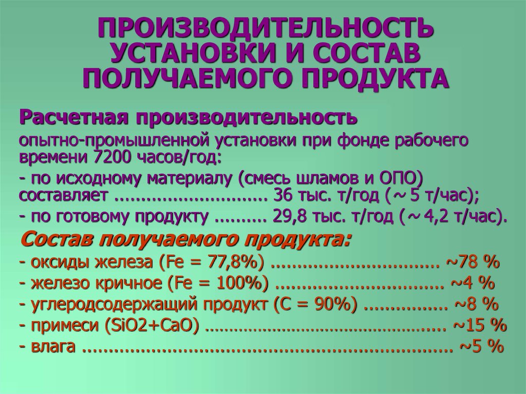 ПРОИЗВОДИТЕЛЬНОСТЬУСТАНОВКИ И СОСТАВ