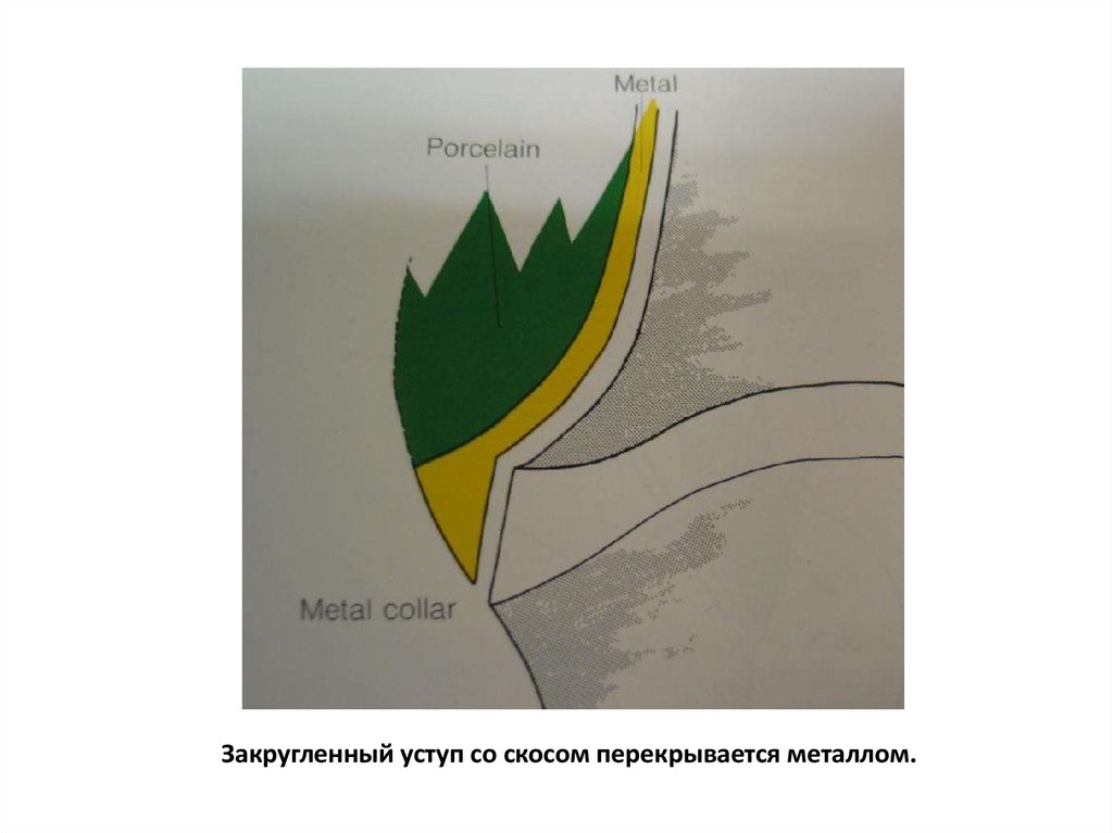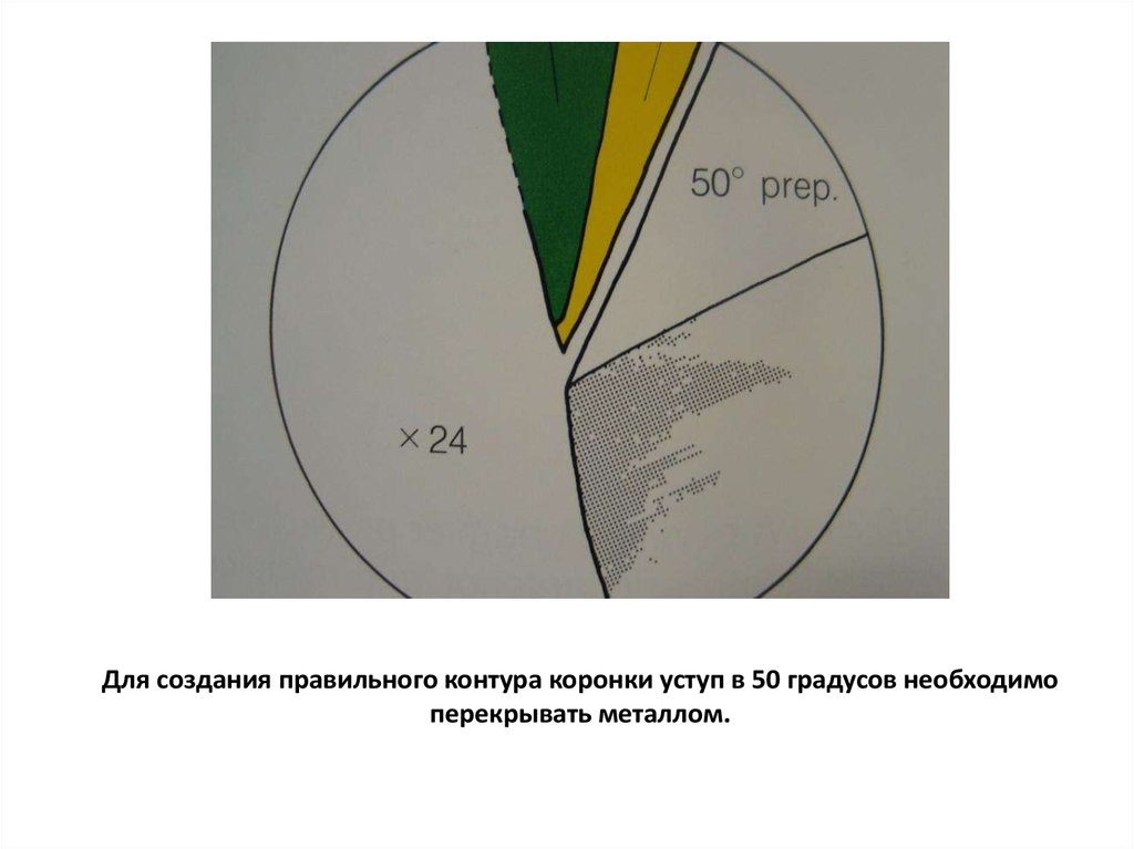 Для создания правильного контура коронки уступ в 50 градусов необходимоперекрывать металлом.