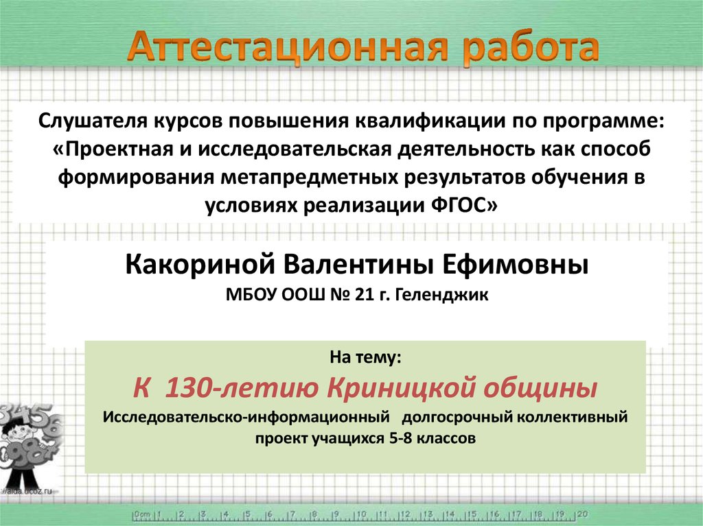 Слушателя курсов повышения квалификации по программе:«Проектная и исследовательская деятельность как способ