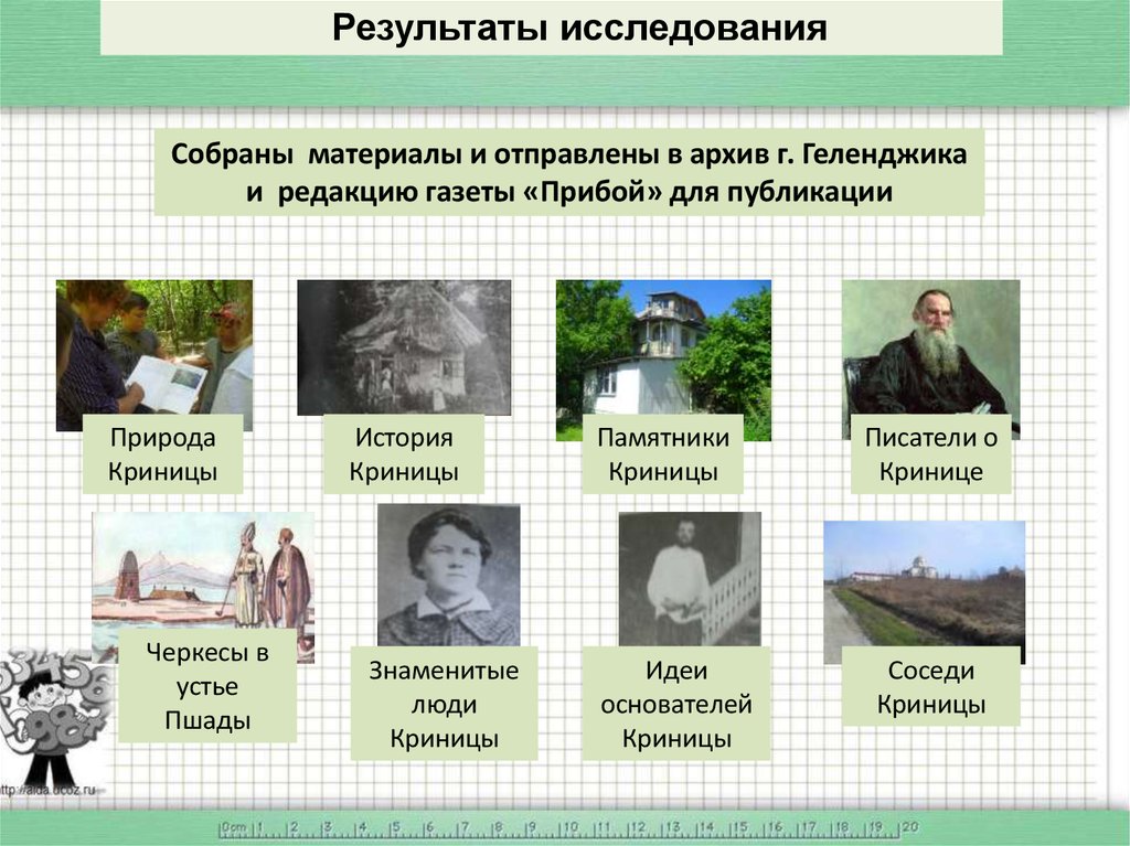 Результаты исследованияСобраны материалы и отправлены в архив г. Геленджика
