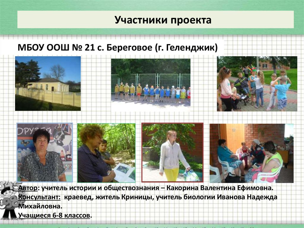 Участники проектаМБОУ ООШ № 21 с. Береговое (г. Геленджик)