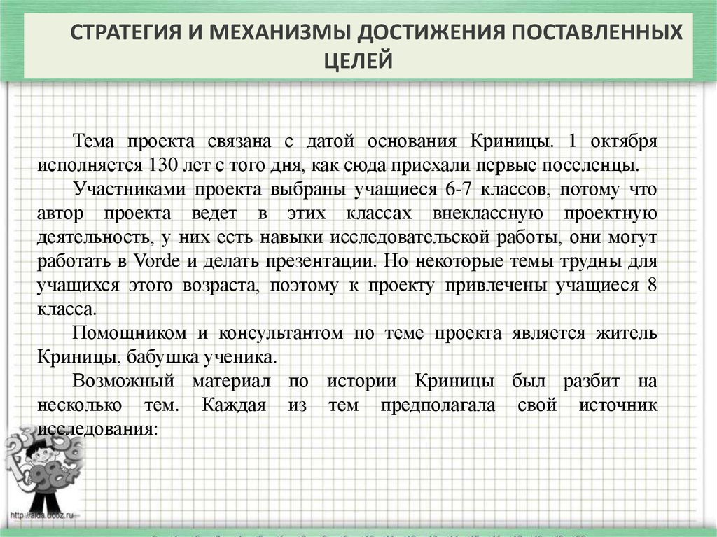 учащихся этого возраста, поэтому к проекту привлечены учащиеся 8