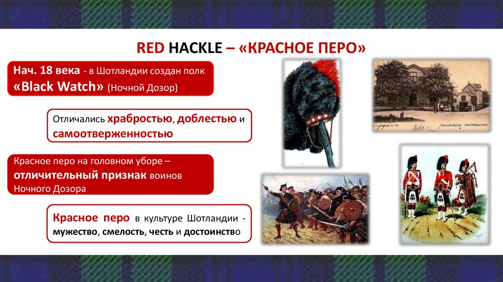 RED HACKLE – «КРАСНОЕ ПЕРО»Нач. 18 века - в Шотландии создан полк