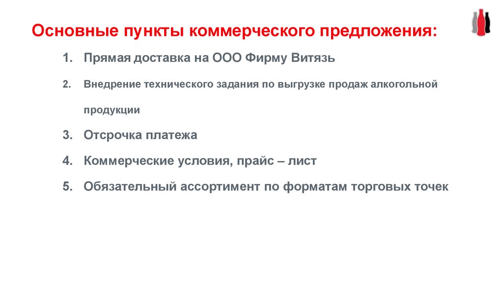 Основные пункты коммерческого предложения:1. Прямая доставка на ООО Фирму Витязь