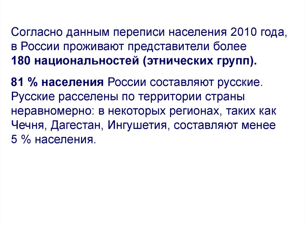 81 % населения России составляют русские.