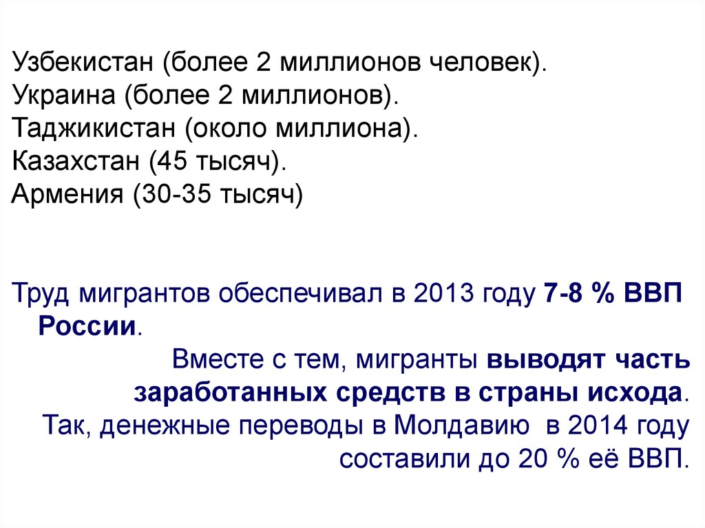 заработанных средств в страны исхода.