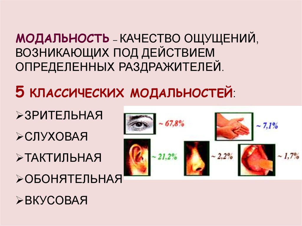 МОДАЛЬНОСТЬ – КАЧЕСТВО ОЩУЩЕНИЙ,ВОЗНИКАЮЩИХ ПОД ДЕЙСТВИЕМ