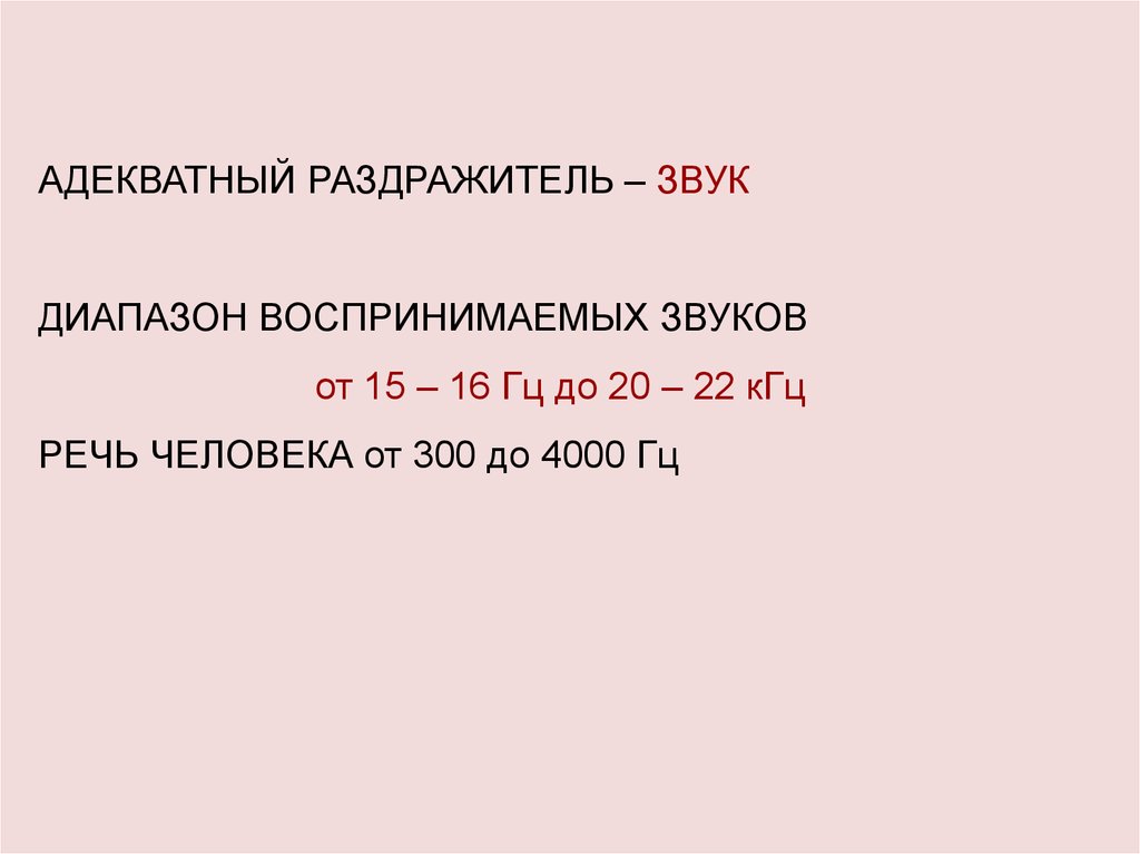 АДЕКВАТНЫЙ РАЗДРАЖИТЕЛЬ – ЗВУКДИАПАЗОН ВОСПРИНИМАЕМЫХ ЗВУКОВ