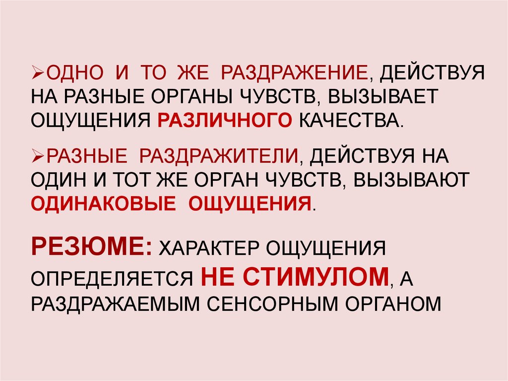 ОДНО И ТО ЖЕ РАЗДРАЖЕНИЕ, ДЕЙСТВУЯНА РАЗНЫЕ ОРГАНЫ ЧУВСТВ, ВЫЗЫВАЕТ