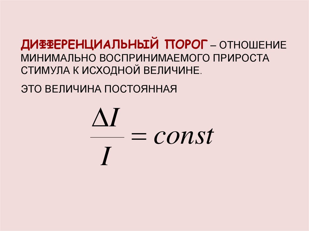 ДИФФЕРЕНЦИАЛЬНЫЙ ПОРОГ – ОТНОШЕНИЕМИНИМАЛЬНО ВОСПРИНИМАЕМОГО ПРИРОСТА