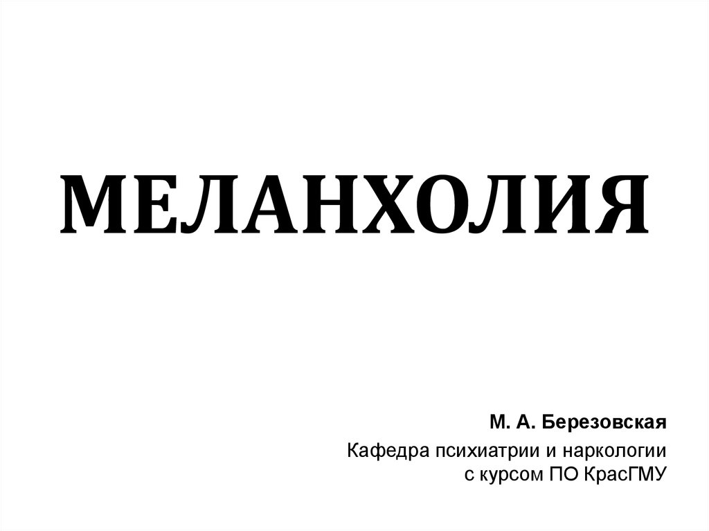 М. А. БерезовскаяКафедра психиатрии и наркологии