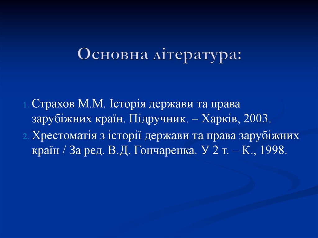 Страхов М.М. Історія держави та правазарубіжних країн. Підручник. – Харків, 2003.