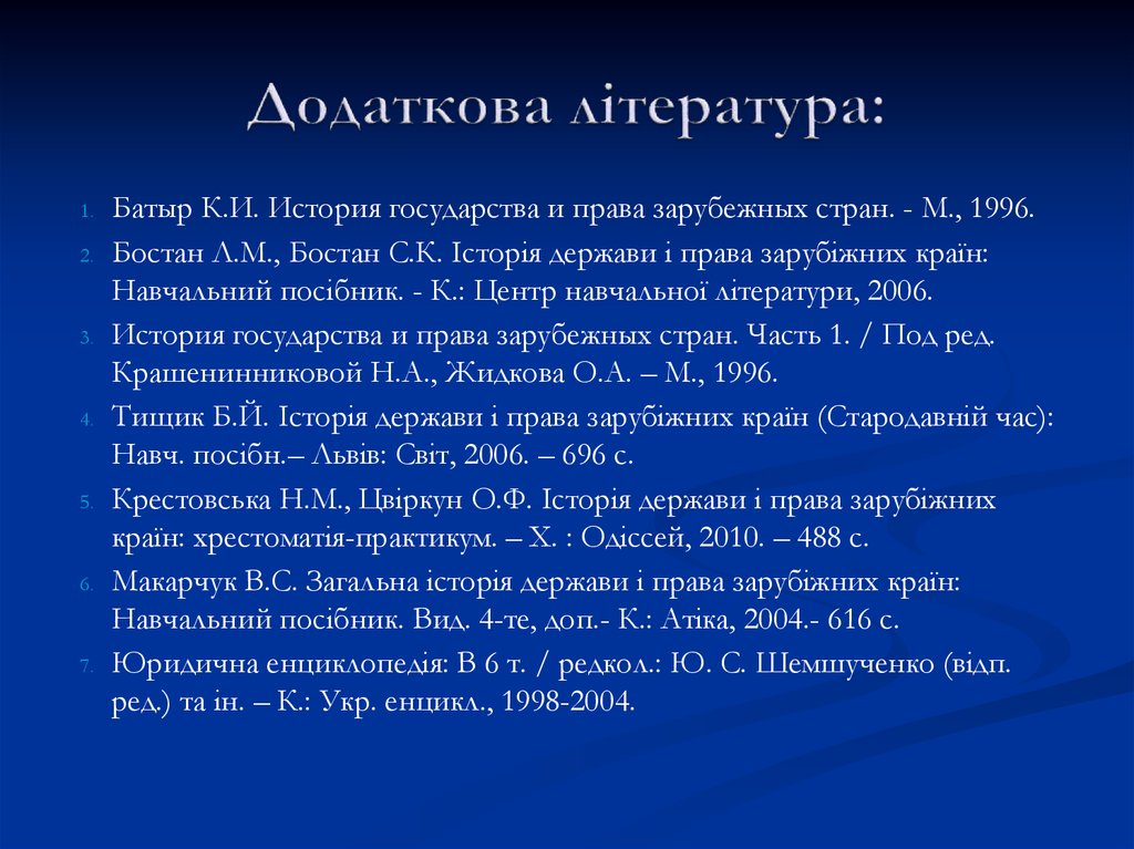Батыр К.И. История государства и права зарубежных стран. - М., 1996.
