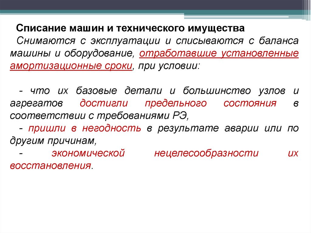 машины и оборудование, отработавшие установленные