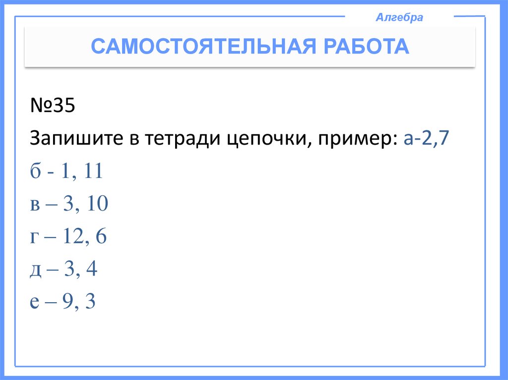 АлгебраСАМОСТОЯТЕЛЬНАЯ РАБОТА