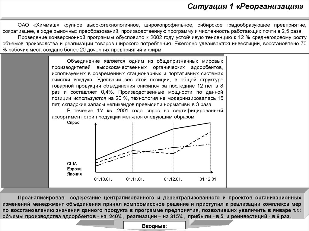 Ситуация 1 «Реорганизация»ОАО «Химмаш» крупное высокотехнологичное, широкопрофильное, сибирское градообразующее предприятие,