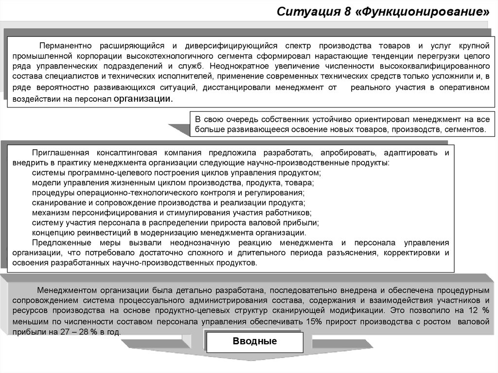 Ситуация 8 «Функционирование»Перманентно расширяющийся и диверсифицирующийся спектр производства товаров и услуг крупной