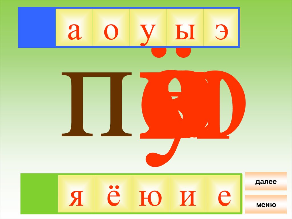а о у ы эя ё ю и е
