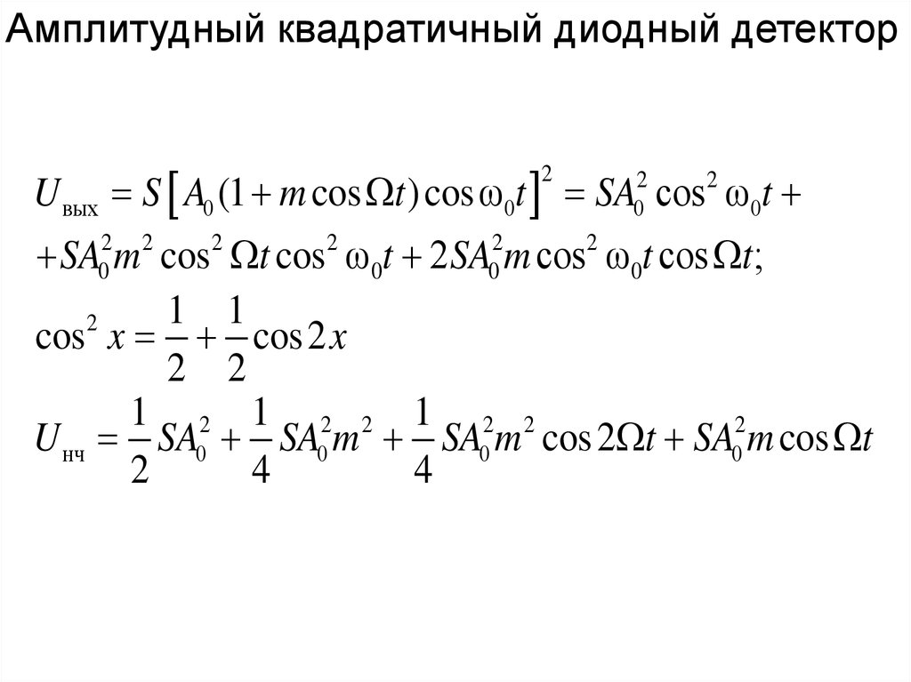 Амплитудный квадратичный диодный детекторU вых S A0 (1 m cos t ) cos ω0t SA02 cos2 ω0t