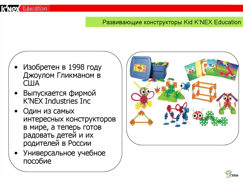 Компания СТЕМКОМПАНИЯ СТЕМ ЯВЛЯЕТСЯ ПРЕДСТАВИТЕЛЕМ K’NEX