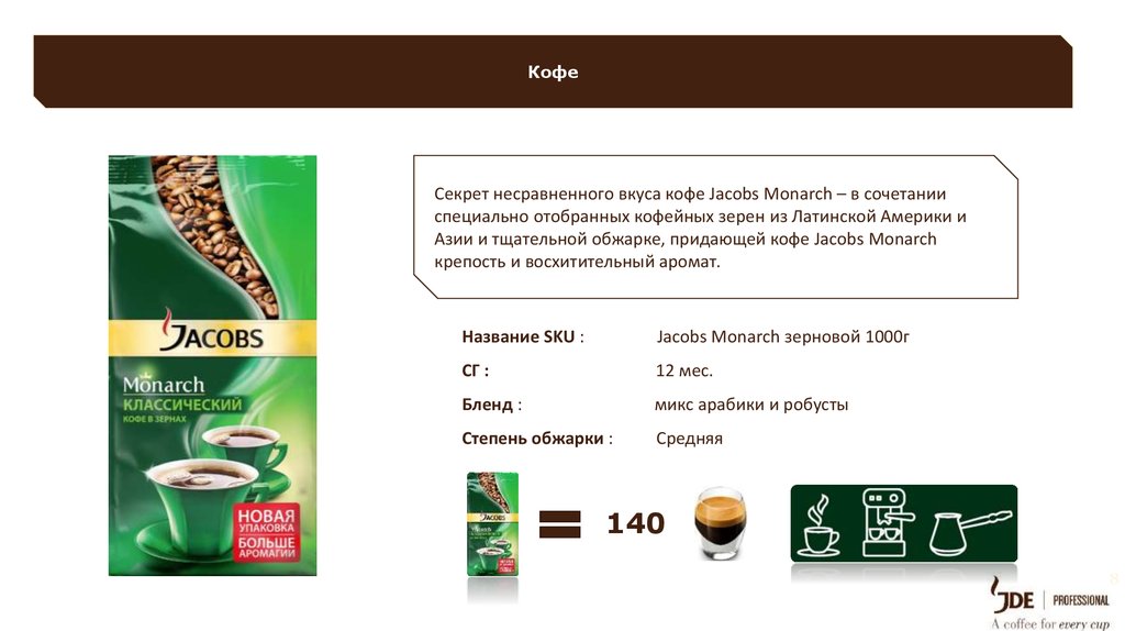 Азии и тщательной обжарке, придающей кофе Jacobs Monarch