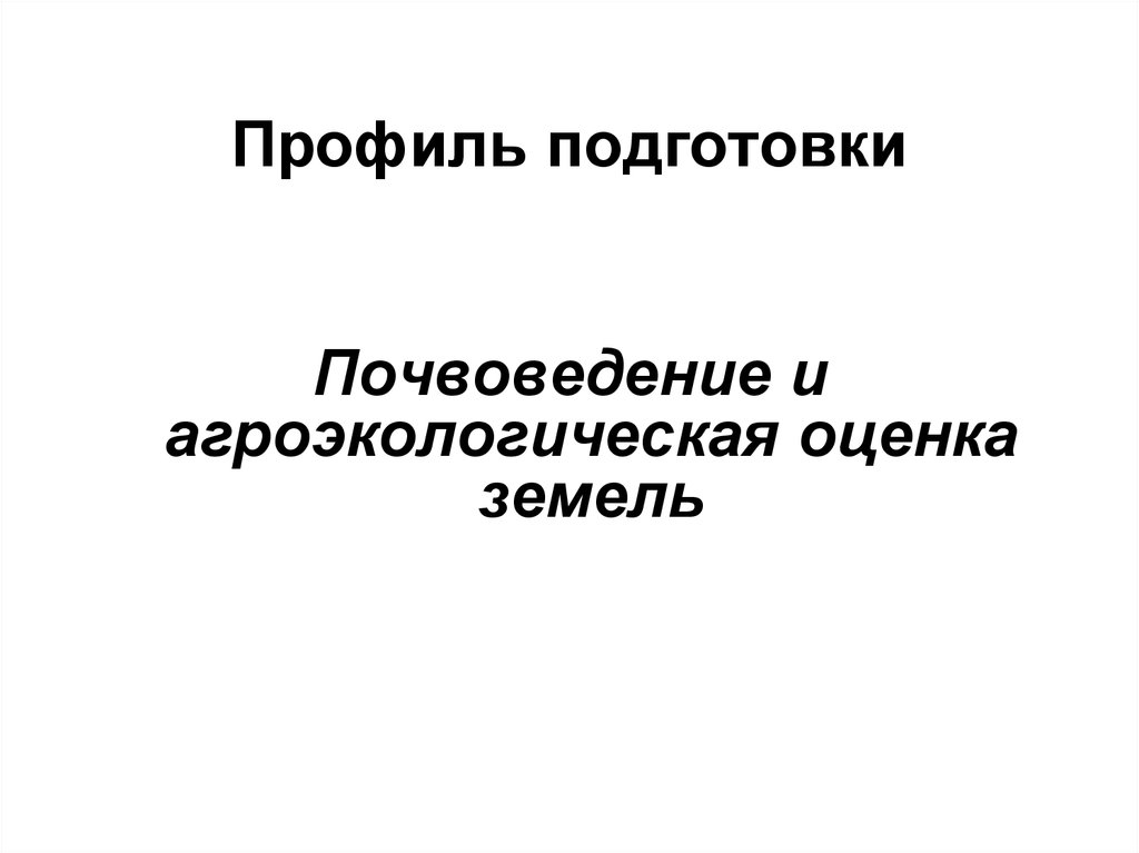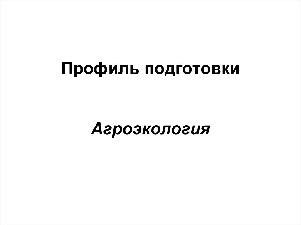 ВПО и Учебного плана по профилю подготовки Агроэкология