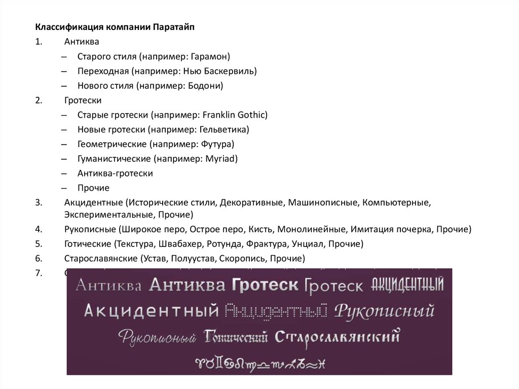 Акцидентные (Исторические стили, Декоративные, Машинописные, Компьютерные,