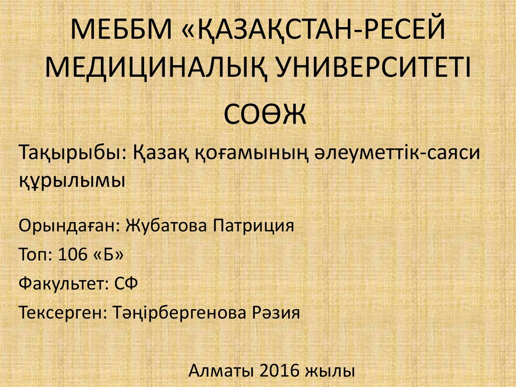 СОӨЖТақырыбы: Қазақ қоғамының әлеуметтік-саяси
