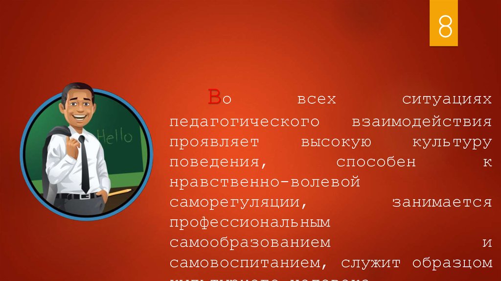 Учитель, обладающий высшим уровнемпедагогической культуры – это человек, который: