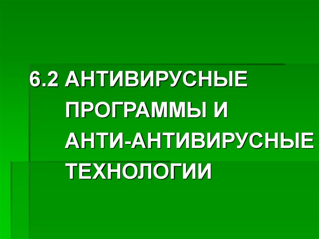 6.2 АНТИВИРУСНЫЕПРОГРАММЫ И