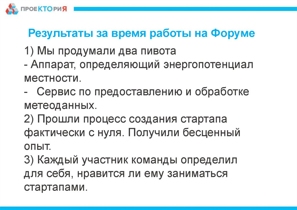 Результаты за время работы на Форуме1) Мы продумали два пивота
